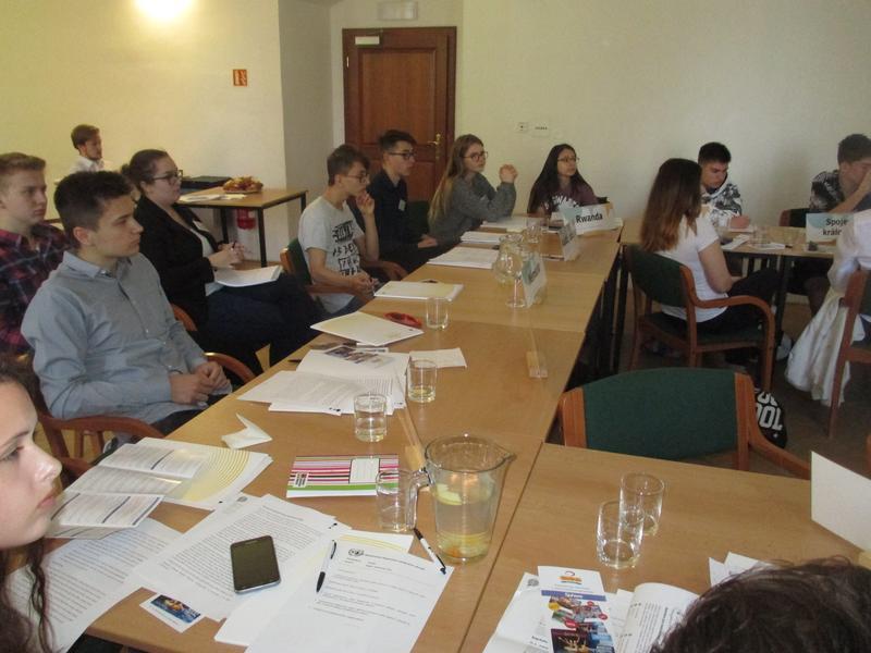 I letos se nám podařilo zařídit příjezd zástupců Asociace studentů pro mezinárodní otázky, která mimo jiné organizuje Pražský studentský summit, k nám do Uherského Hradiště a zorganizovat již podruhé diplomatickou simulaci politického jednání Rady bezpečnosti OSN. Je to zároveň takové neformální vzdělávání budoucích politiků, aktivních občanů a hlasů z lidu. V loňském roce se řešila krize na Ukrajině, letos válka v Sýrii. Žáci tak měli možnost vžít se do role velvyslanců jednotlivých zemí a zastupovat jejich zájmy.