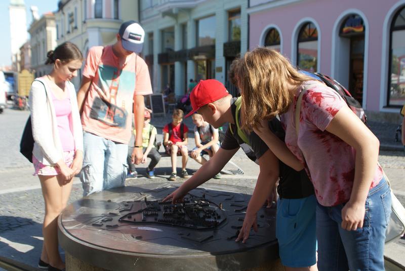 Kromě prohlídky objektů nejen historické hodnoty v centru města také vyplňovali pracovní listy, skládali puzzle našeho královského města, třísložkové karty nejvýznamnějších budov a doplňovali obrázky na tabuli do časové osy. Na závěr je čekala prohlídka v Expozici dějin města v budově Jezuitské koleje.