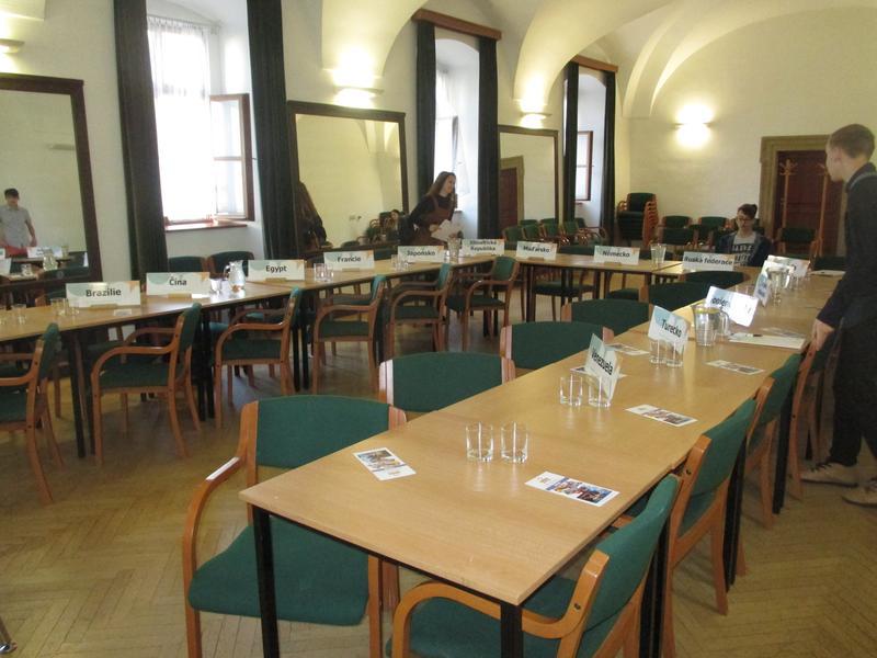 I letos se nám podařilo zařídit příjezd zástupců Asociace studentů pro mezinárodní otázky, která mimo jiné organizuje Pražský studentský summit, k nám do Uherského Hradiště a zorganizovat již podruhé diplomatickou simulaci politického jednání Rady bezpečnosti OSN. Je to zároveň takové neformální vzdělávání budoucích politiků, aktivních občanů a hlasů z lidu. V loňském roce se řešila krize na Ukrajině, letos válka v Sýrii. Žáci tak měli možnost vžít se do role velvyslanců jednotlivých zemí a zastupovat jejich zájmy.