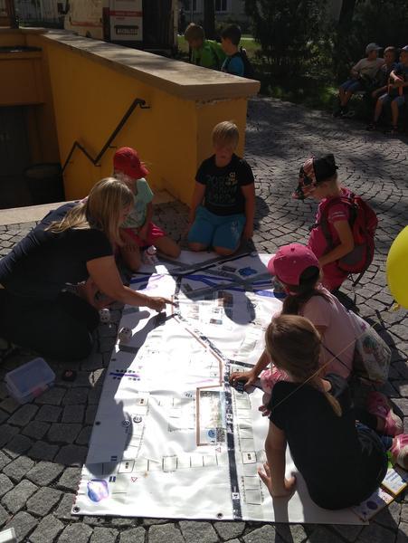 Hrálo se jako o duši. Děti si mohly vybrat figurky, což byly chodci, autíčka, cyklista, vlak a autobusy. Pomocí hodu kostkou se následně posouvaly po políčcích či zastávkách k pokladu ve městě na náměstí. Poklad vyměnily ve stánku ICM za bombón. Kdo uspěl ve hře "Den bez aut" nejlíp. No přeci chodec - okamžitá výhra a údiv v očích dětí. Figurka autíčka byla totiž nejhezčí a získání výhry trvalo nejdéle.