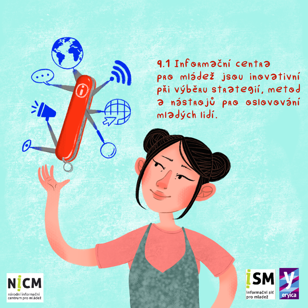 Žijeme v době, kdy informace mnohonásobně přerostly poptávku. Je těžké se v nich vyznat a třídit je. Profesionálové z řad pracovníků Informačních center pro mládež jsou vyškoleni tak, aby pomohli mladým lidem vyhledávat a ověřovat informace v rámci principů Charty.