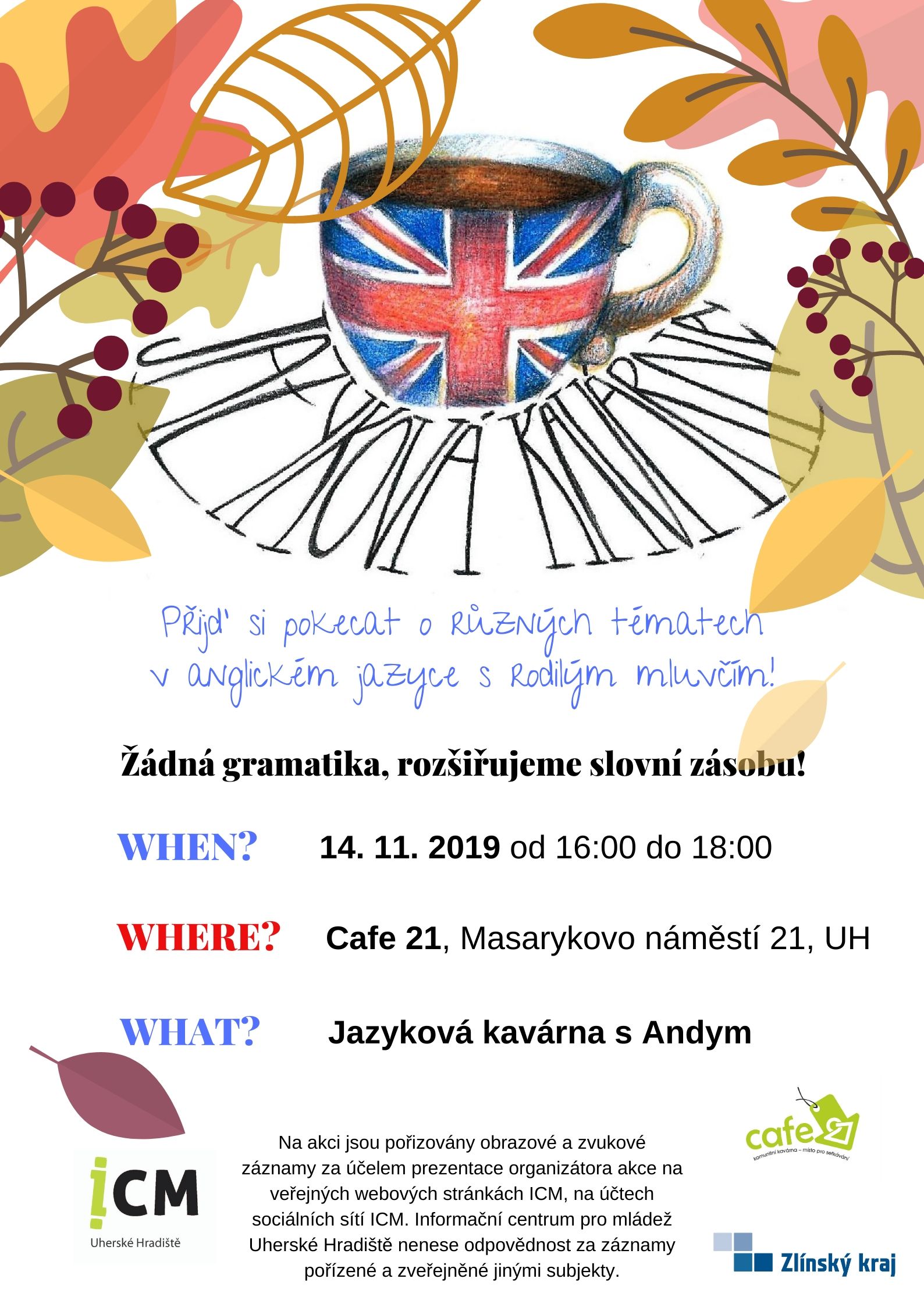 Také v listopadu si můžeš pokecat v angličtině s Andym a dalšími pravidelnými návštěvníky jazykové kavárny!
