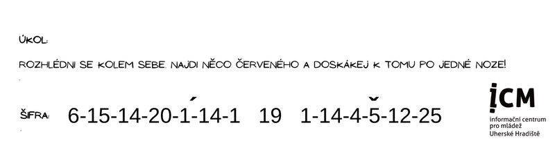 - sledovat instrukce na FB stránkách Informační centrum pro mládež Uherské Hradiště (abys získal nápovědu kde a co hledat)